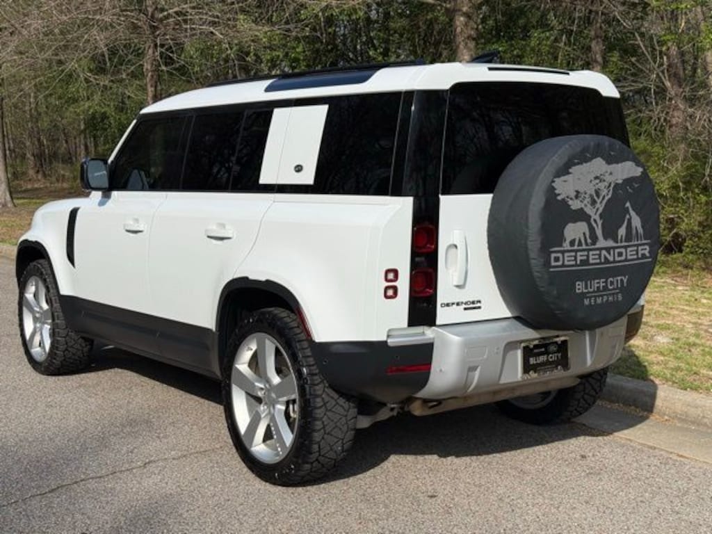 Recent Arrival! Clean CARFAX. White 2020 Defender 110 HSE 4WD 8-Speed Automatic 3.0L I6 11 Speakers, 14-Way Heated & Cooled Electric Memory Seats, 3.6 Axle Ratio, 4-Wheel Disc Brakes, ABS brakes, Adaptive suspension, Air Conditioning, Alloy wheels, AM/FM radio, Apple CarPlay & Android Auto, Auto High-beam Headlights, Auto tilt-away steering wheel, Auto-dimming door mirrors, Auto-dimming Rear-View mirror, Automatic temperature control, Brake assist, Bumpers: body-color, Compass, Delay-off headlights, Driver door bin, Driver vanity mirror, Dual front impact airbags, Dual front side impact airbags, Electronic Stability Control, Four wheel independent suspension, Front anti-roll bar, Front Bucket Seats, Front Center Armrest, Front dual zone A/C, Front fog lights, Front reading lights, Fully automatic headlights, Garage door transmitter: HomeLink, Heated door mirrors, Heated front seats, Illuminated entry, Leather Shift Knob, Leather steering wheel, Low tire pressure warning, Memory seat, Navigation system: Connected Navigation PIVI Pro, Occupant sensing airbag, Outside temperature display, Overhead airbag, Overhead console, Panic alarm, Passenger door bin, Passenger vanity mirror, Power door mirrors, Power driver seat, Power moonroof, Power passenger seat, Power steering, Power windows, Radio data system, Radio: 400W 11 Speaker Meridian Sound System, Rain sensing wipers, Rear anti-roll bar, Rear fog lights, Rear reading lights, Rear seat center armrest, Rear window defroster, Rear window wiper, Remote keyless entry, Roof rack: rails only, Security system, SiriusXM Satellite Radio & HD Radio, Speed control, Speed-sensing steering, Speed-Sensitive Wipers, Split folding rear seat, Steering wheel memory, Steering wheel mounted audio controls, Tachometer, Telescoping steering wheel, Tilt steering wheel, Traction control, Trip computer, Variably intermittent wipers, Ventilated front seats, Weather band radio, Wheels: 20" Style 5095, Windsor Leather Seat Trim.