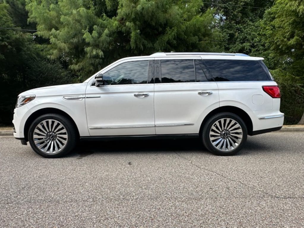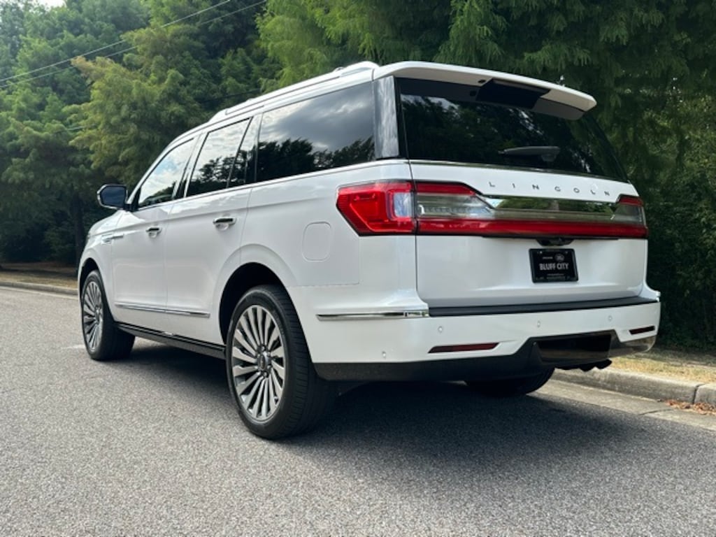 Clean CARFAX. CARFAX One-Owner. White Platinum Clearcoat 2019 Lincoln Navigator Reserve 4WD 10-Speed Automatic V6 4WD, Dark Slate Leather, 14 Speakers, 1st & 2nd Row All-Weather Floor Liners, 3.73 Axle Ratio, 30-Way Perfect Position Seating w/Active Motion, 3rd row seats: split-bench, 4-Wheel Disc Brakes, ABS brakes, Adaptive suspension, Adjustable pedals, Air Conditioning, Alloy wheels, AM/FM radio: SiriusXM, AppLink/Apple CarPlay and Android Auto, Audio memory, Auto High-beam Headlights, Auto tilt-away steering wheel, Auto-dimming door mirrors, Auto-dimming Rear-View mirror, Auto-leveling suspension, Automatic temperature control, Bodyside moldings, Brake assist, Bumpers: body-color, Cargo Package, Chrome Roof Rack w/Crossbars, Compass, Delay-off headlights, Driver door bin, Driver vanity mirror, Driver's Seat Mounted Armrest, Dual front impact airbags, Dual front side impact airbags, Electronic Stability Control, Emergency communication system: 911 Assist, Equipment Group 300A Reserve, Exterior Parking Camera Rear, Four wheel independent suspension, Front anti-roll bar, Front Bucket Seats, Front dual zone A/C, Front fog lights, Front reading lights, Fully automatic headlights, Garage door transmitter: HomeLink, Genuine wood dashboard insert, Genuine wood door panel insert, GVWR: 7,625 lbs Payload Package, Heads-Up Display, Heated door mirrors, Heated front seats, Heated rear seats, Heated steering wheel, HVAC memory, Illuminated entry, Leather steering wheel, Low tire pressure warning, Memory seat, Navigation System, Occupant sensing airbag, Outside temperature display, Overhead airbag, Overhead console, Panic alarm, Passenger door bin, Passenger seat mounted armrest, Passenger vanity mirror, Pedal memory, Power adjustable rear head restraints, Power door mirrors, Power driver seat, Power Liftgate, Power moonroof: Panoramic Vista Roof, Power passenger seat, Power steering, Power windows, Premium Lthr Htd/Ventilated Low-Back Bucket Seats, Radio data system, Radio: Revel AM/FM/HD/MP3 Audio System, Rain sensing wipers, Rear air conditioning, Rear anti-roll bar, Rear audio controls, Rear reading lights, Rear window defroster, Rear window wiper, Reclining 3rd row seat, Remote keyless entry, Revel Ultima Audio System w/20 Speakers, Roof rack: rails only, Security system, SiriusXM Radio, Speed control, Speed-sensing steering, Speed-Sensitive Wipers, Split folding rear seat, Spoiler, Steering wheel memory, Steering wheel mounted audio controls, SYNC 3 Communications & Entertainment System, Tachometer, Telescoping steering wheel, Tilt steering wheel, Traction control, Trip computer, Turn signal indicator mirrors, Variably intermittent wipers, Ventilated front seats, Wheels: 22" 16-Spoke Ultra Bright Machined Alum, 4WD, Dark Slate Leather.