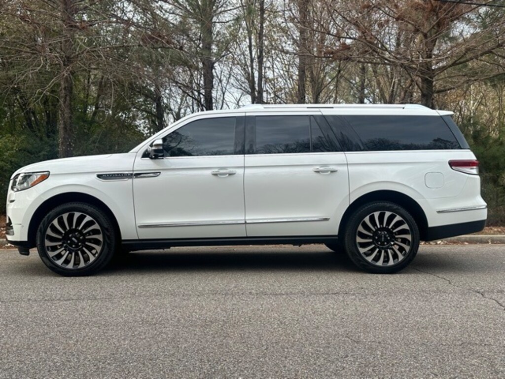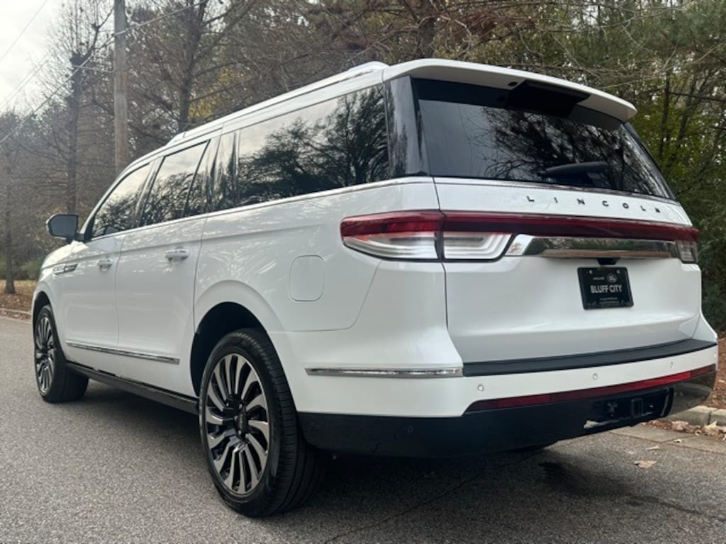 Priced below KBB Fair Purchase Price! Clean CARFAX. Pristine White Metallic Tri-Coat 2023 Lincoln Navigator L L Black Label 4WD 10-Speed Automatic V6 Sunroof/Moonroof, Non-Smoker, Local Trade, 26mm Radiator, 28 Speakers, 2nd Row Heated/Ventilated 40/Console/40 Seat, 3.73 Axle Ratio, 3rd row seats: split-bench, 4-Wheel Disc Brakes, ABS brakes, Active Park Assist 2.0 Delete, Adaptive suspension, Adjustable pedals, Air Conditioning, Alloy wheels, AM/FM radio: SiriusXM with 360L, Audio memory, Auto High-beam Headlights, Auto Start-Stop Technology, Auto tilt-away steering wheel, Auto-dimming door mirrors, Auto-dimming Rear-View mirror, Auto-leveling suspension, Automatic temperature control, Bodyside moldings, Brake assist, Bumpers: body-color, Class IV w/4-Pin & 7-Pin Connectors, Compass, Delay-off headlights, Driver door bin, Driver vanity mirror, Driver's Seat Mounted Armrest, Dual front impact airbags, Dual front side impact airbags, Electronic Stability Control, Electronic Traction Assist (eLSD), Emergency communication system: 911 Assist, Equipment Group 800A Black Label, Exterior Parking Camera Rear, Floor Carpet/Mats - Espresso w/Dinamica Suede, Four wheel independent suspension, Front anti-roll bar, Front Bucket Seats, Front dual zone A/C, Front fog lights, Front reading lights, Front Tow Hooks, Fully automatic headlights, Garage door transmitter, Genuine wood console insert, Genuine wood door panel insert, Hands-Free Liftgate Delete, Head restraints memory, Headliner - Alpine Dinamica Suede, Heads-Up Display, Heated door mirrors, Heated front seats, Heated rear seats, Heated steering wheel, Heavy-Duty Trailer Tow Package, HVAC memory, Illuminated entry, Leather steering wheel, Leather-Wrapped Interior - Alpine w/Black Stitch, Low tire pressure warning, Memory seat, Navigation system: Connected Navigation (3-year trial), Occupant sensing airbag, Outside temperature display, Overhead airbag, Overhead console, Panic alarm, Passenger door bin, Passenger seat mounted armrest, Passenger vanity mirror, Pedal memory, Power adjustable front head restraints, Power adjustable rear head restraints, Power door mirrors, Power driver seat, Power Liftgate, Power moonroof: Panoramic Vista Roof, Power passenger seat, Power steering, Power windows, Pro-Trailer Backup Assist 2.0, Radio data system, Radio: Revel Ultima 3D Audio System w/28 Speakers, Rain sensing wipers, Rear air conditioning, Rear anti-roll bar, Rear audio controls, Rear reading lights, Rear seat center armrest, Rear window defroster, Rear window wiper, Reclining 3rd row seat, Remote keyless entry, Security system, Silverwood Recon Appliques, SiriusXM w/360L, Slow Climb Drive Mode, Smart Trailer Tow, Speed control, Speed-sensing steering, Speed-Sensitive Wipers, Split folding rear seat, Spoiler, Steering wheel memory, Steering wheel mounted audio controls, SYNC 4 Communications & Entertainment System, Tachometer, Telescoping steering wheel, Tiered Cargo Area Management System, Tilt steering wheel, Traction control, Trailer Brake Controller, Trailer Sway Control, Trip computer, Turn signal indicator mirrors, Variably intermittent wipers, Venetian Lthr Auto Htd/Ventilatd Capt's Chairs (B), Ventilated front seats, Ventilated rear seats, Voice-Activated Touchscreen Navigation System, Wheels: 22" 14-Spoke Bright Machined Aluminum.