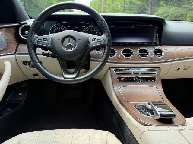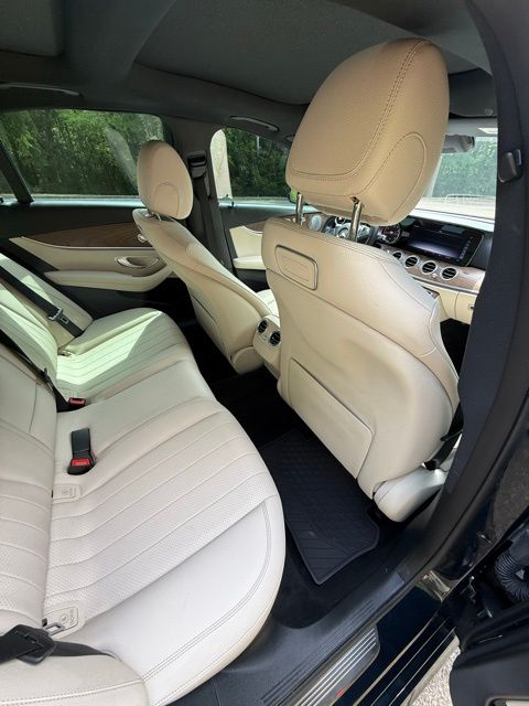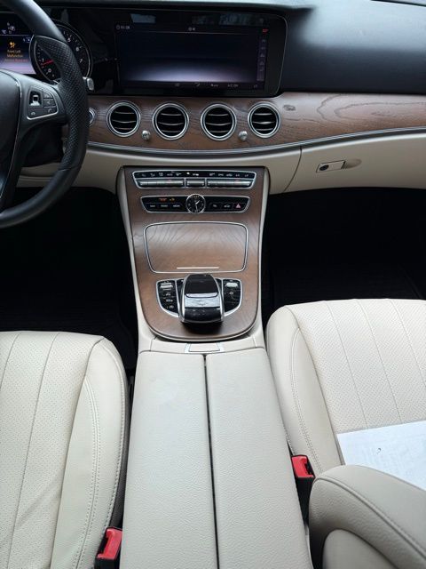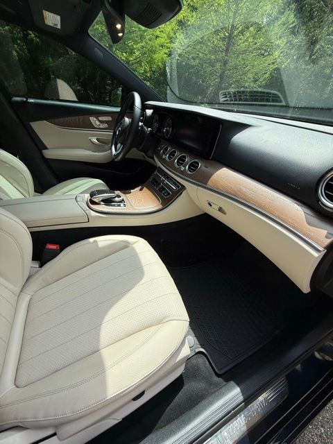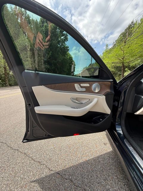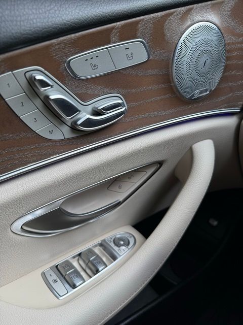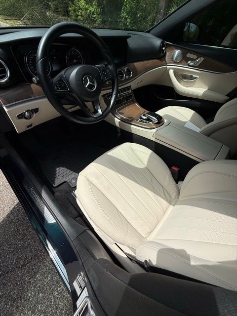 Green 2018 Mercedes-Benz E-Class E 300 RWD 9-Speed Automatic I4 115V AC Power Outlet, 18" 5-Spoke Wheels, 19" AMG® Twin 5-Spoke Wheels, 4-Wheel Disc Brakes, 8 Speakers, ABS brakes, Active Parking Assist, Adaptive Highbeam Assist, Air Conditioning, Alloy wheels, AM/FM radio, AMG® Body Styling, AMG® Line Exterior, Anti-whiplash front head restraints, Apple CarPlay®/Android Auto®, Auto tilt-away steering wheel, Auto-dimming door mirrors, Auto-dimming Rear-View mirror, Automatic temperature control, Black Headliner, Blind Spot Assist, Brake assist, Bumpers: body-color, Burl Walnut Wood Trim, Burmester® Surround Sound System, Delay-off headlights, Driver door bin, Driver vanity mirror, Dual front impact airbags, Dual front side impact airbags, eCall Emergency System, Electric Trunk Closer, Electronic Stability Control, Emergency communication system: mbrace2, Exterior Parking Camera Rear, Four wheel independent suspension, Front anti-roll bar, Front Bucket Seats, Front Center Armrest, Front dual zone A/C, Front reading lights, Fully automatic headlights, Garage door transmitter: Homelink, Genuine wood dashboard insert, Genuine wood door panel insert, Hands-Free Access, HD Radio, Head restraints memory, Heated door mirrors, Heated Front Seats, Illuminated entry, Illuminated Star, KEYLESS GO®, KEYLESS GO® Comfort Package Code, Knee airbag, Leather Shift Knob, Live Traffic, Low tire pressure warning, Lowered Suspension w/Selective Damping System, MB-Tex Upholstery, Memory seat, Natural Grain Brown Ash Wood Center Console, Navigation system: COMAND®, NFC Wireless Charging, Occupant sensing airbag, Outside temperature display, Overhead airbag, Overhead console, Panic alarm, Panorama Roof, Parking Assist Package Code, Passenger door bin, Passenger vanity mirror, Perforated Front Brake Discs & Fr Brake Calipers, Power adjustable front head restraints, Power adjustable rear head restraints, Power door mirrors, Power driver seat, Power Front Seats, Power moonroof, Power passenger seat, Power steering, Power windows, Premium 1 Package, Premium audio system: COMAND®, Radio data system, Radio: COMAND® Navigation (NTG 5.5), Rain sensing wipers, Rear anti-roll bar, Rear fog lights, Rear reading lights, Rear seat center armrest, Rear Seat Entertainment and Comfort Adapter, Rear Spoiler, Rear window defroster, Remote keyless entry, Security system, SiriusXM Radio, Speed control, Speed-sensing steering, Split folding rear seat, Sport Interior, Sport Interior (P15), Sport Package, Steering wheel memory, Steering wheel mounted audio controls, Steering Wheel Shift Paddles, Tachometer, Telescoping steering wheel, Tilt steering wheel, Traction control, Trip computer, Turn signal indicator mirrors, Variably intermittent wipers, Weather band radio, Wheel Locks.